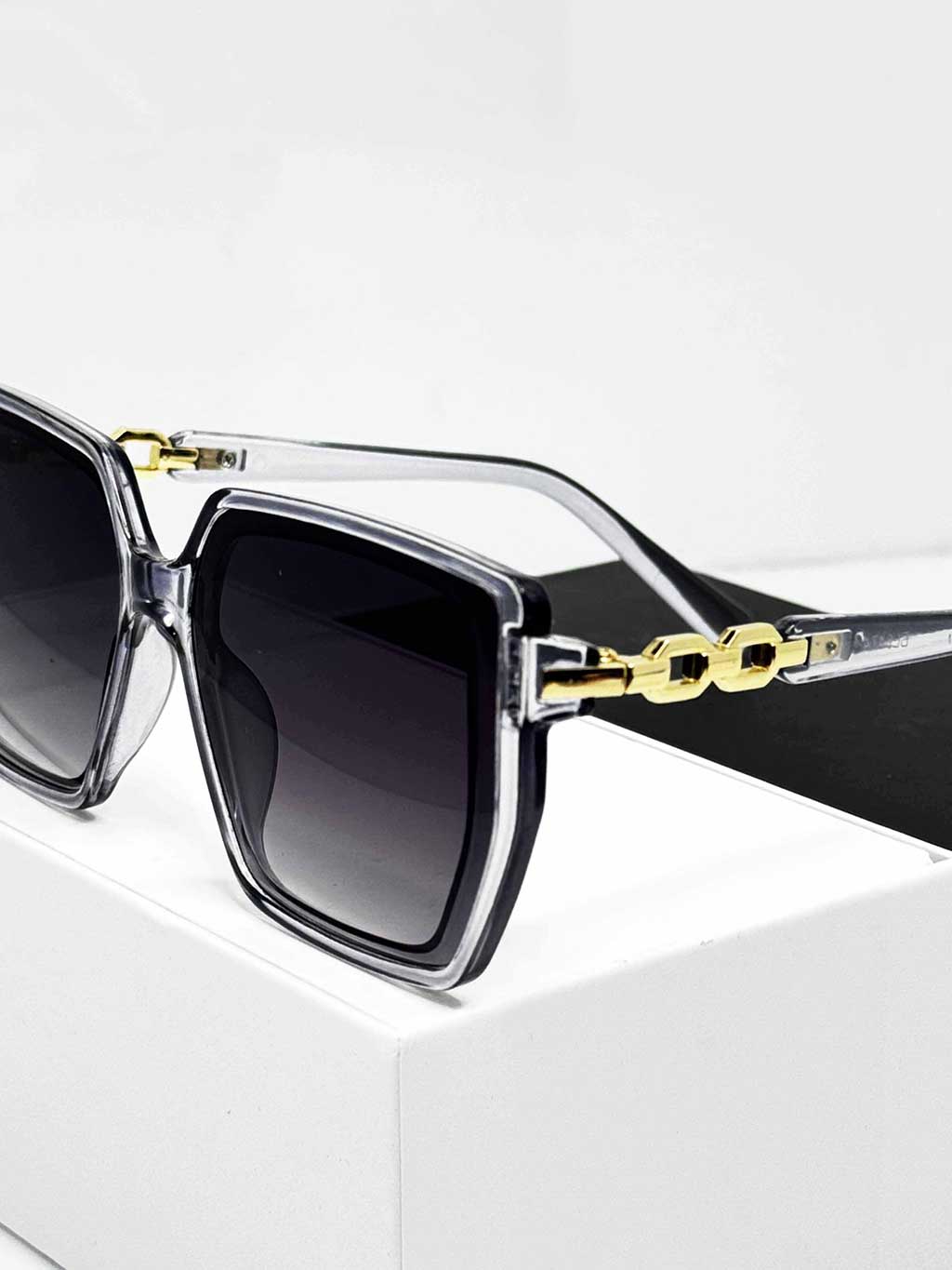 عینک آفتابی زنانه مربعی شفاف با دسته طلایی – مدل جدید2025
