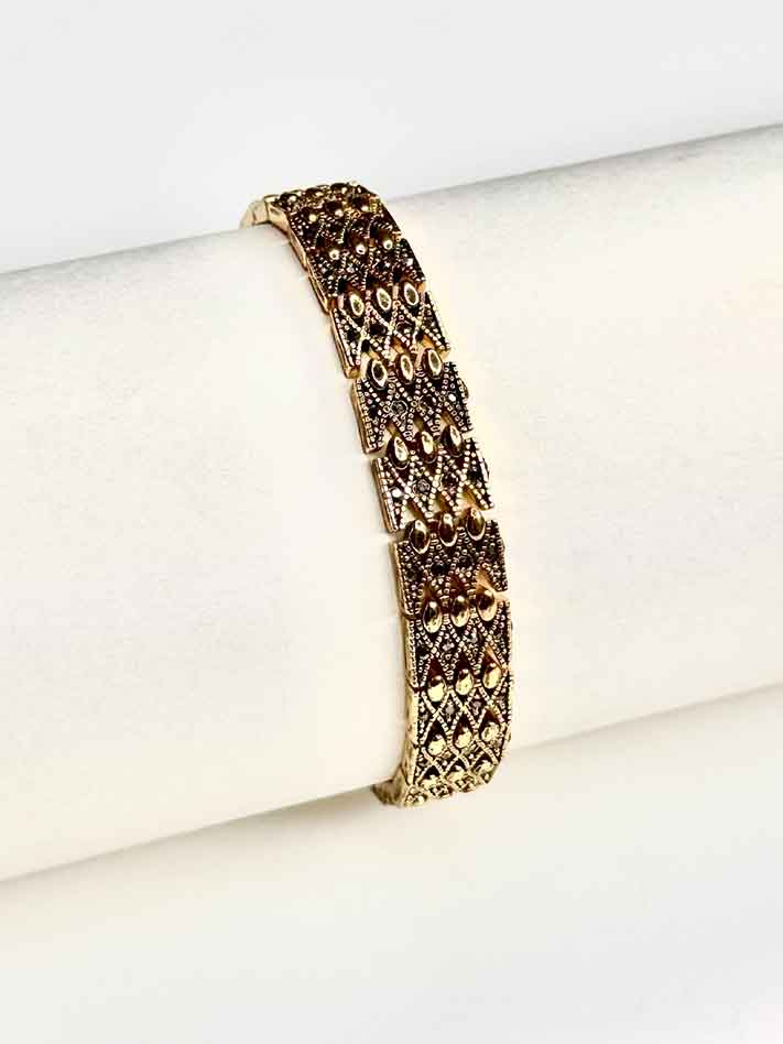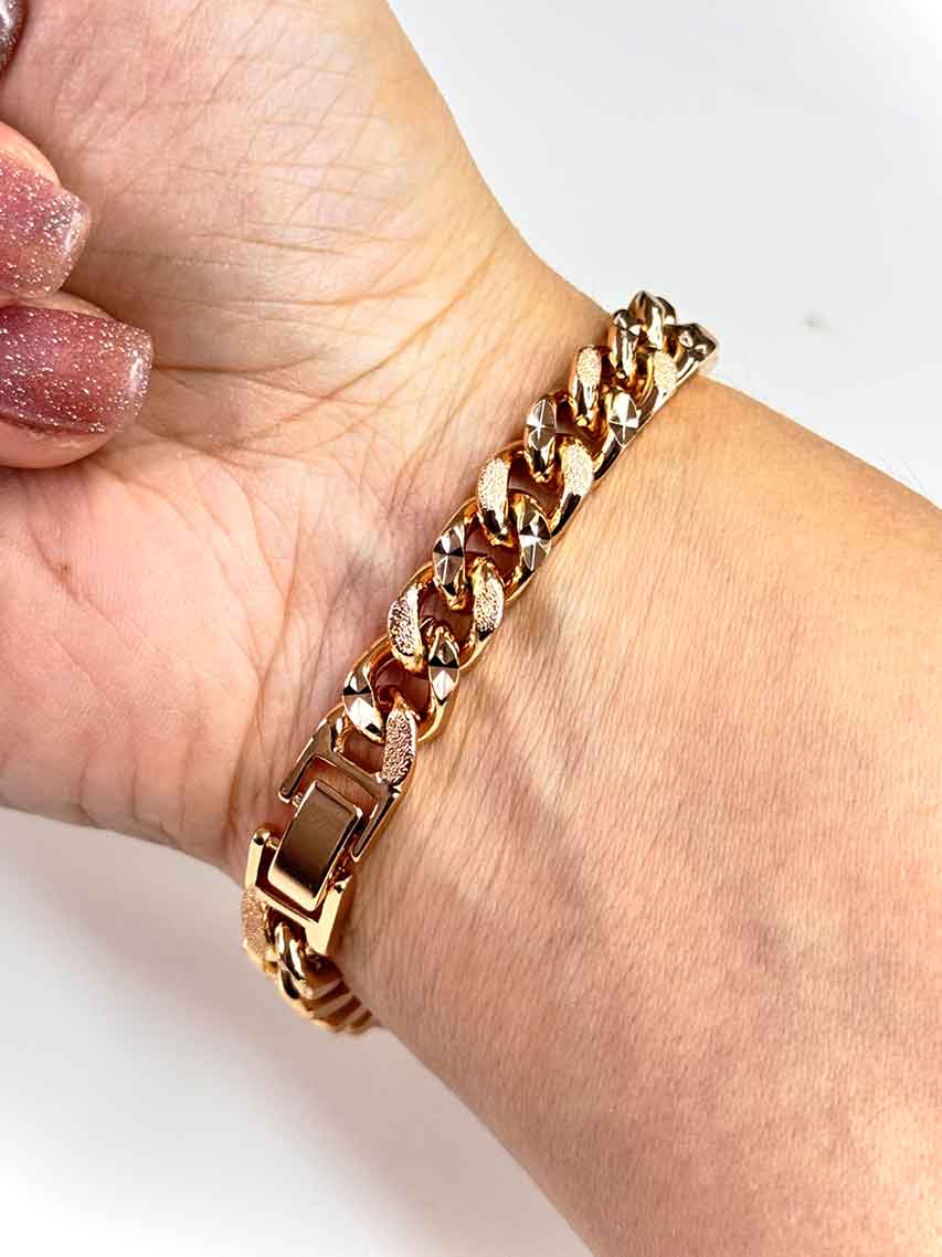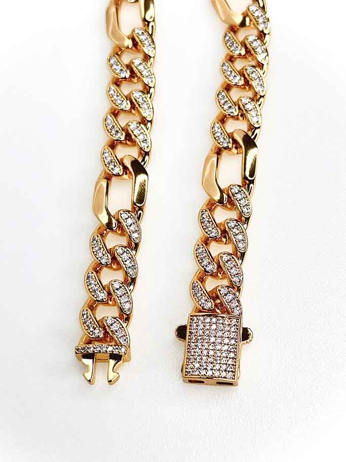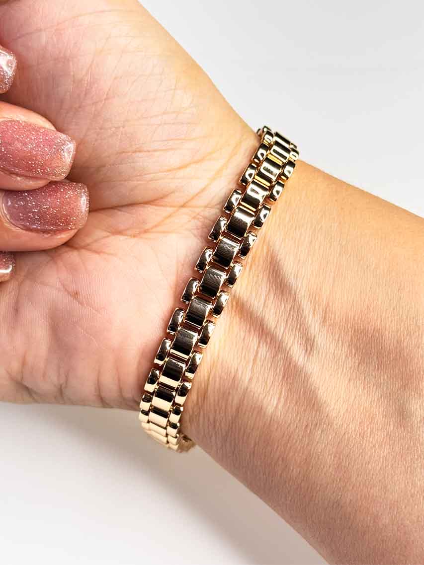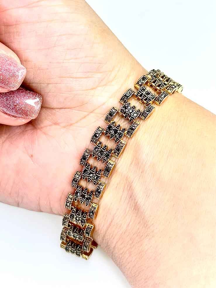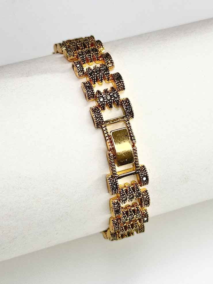 دستبند زنانه طلایی نگین دار مدل زنجیری لوکس | زیورآلات شیک بوبینو