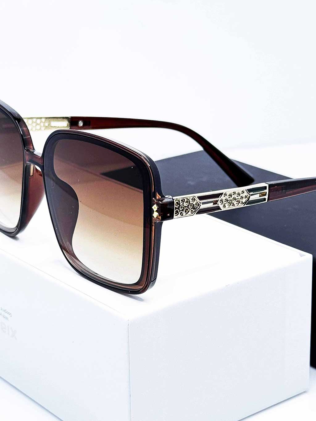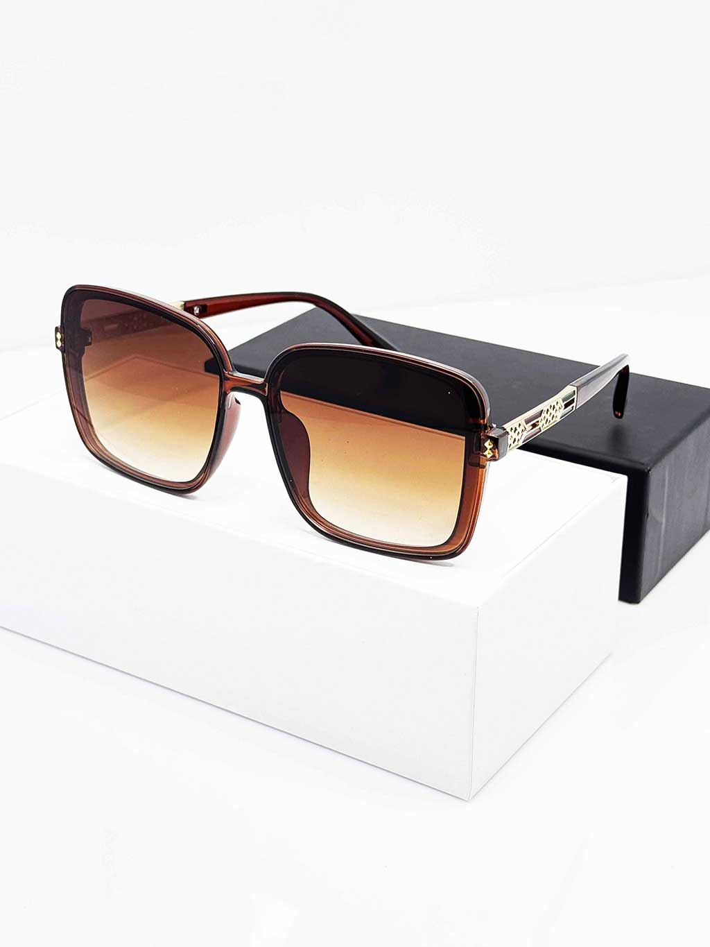 عینک آفتابی زنانه مربعی شفاف با دسته طلایی – مدل جدید2025