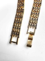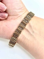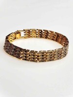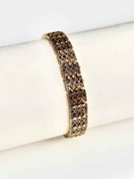 دستبند زنانه سیاه قلم نگیندار یکی از خاصترین زیورآلات کلاسیک زنانه است که با طراحی شیک و ظریف خود، جلوهای منحصربهفرد به استایل شما میبخشد. این دستبند با ترکیب رنگ طلایی و مشکی، حس اصالت و جذابیت را در کنار هم به نمایش میگذارد. نگینهای کارشده روی بدنه دستبند، درخشش چشمنوازی ایجاد کردهاند که در نور طبیعی یا مصنوعی جلوهای خیرهکننده دارد.