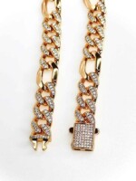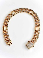 این دستبند زنانه زیبا با طراحی زنجیری و نگینهای درخشان، جلوهای خاص و مجلل به دستان شما میبخشد. ترکیب درخشش طلای براق با نگینهای ریز و ظریف، آن را به انتخابی ایدهآل برای خانمهایی تبدیل کرده است که به جزئیات اهمیت میدهند.