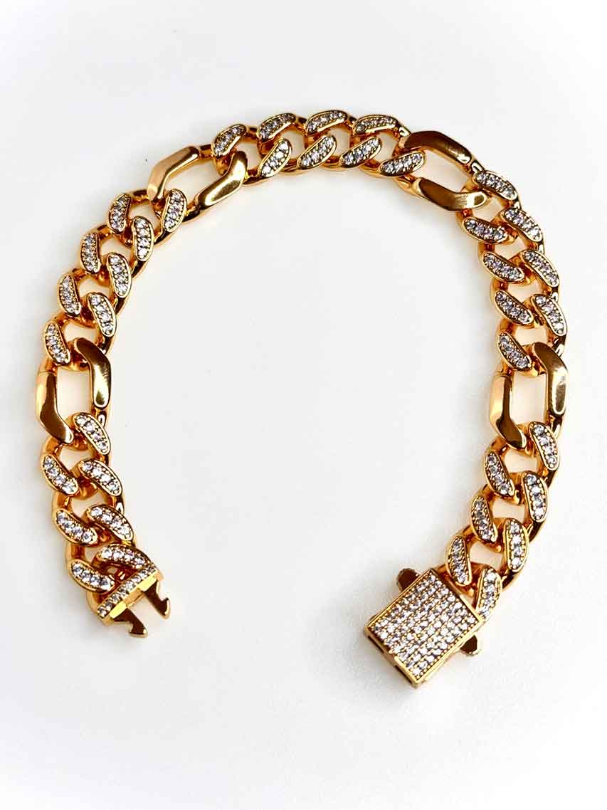 دستبند زنانه طلایی نگین دار مدل زنجیری لوکس | زیورآلات شیک بوبینو