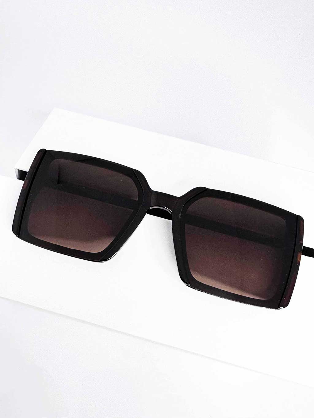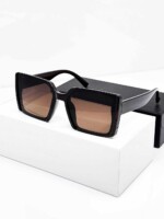 عینک آفتابی زنانه با فریم مربعی و لنز گرادیانت قهوه ای؛ استایل اوورسایز، جذاب و ترند روز. فریم کریستالی قهوه ای، لنزهای سبک با پوشش UV400 برای حفاظت از چشم، مناسب استایلهای شهری و مهمانی.