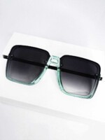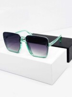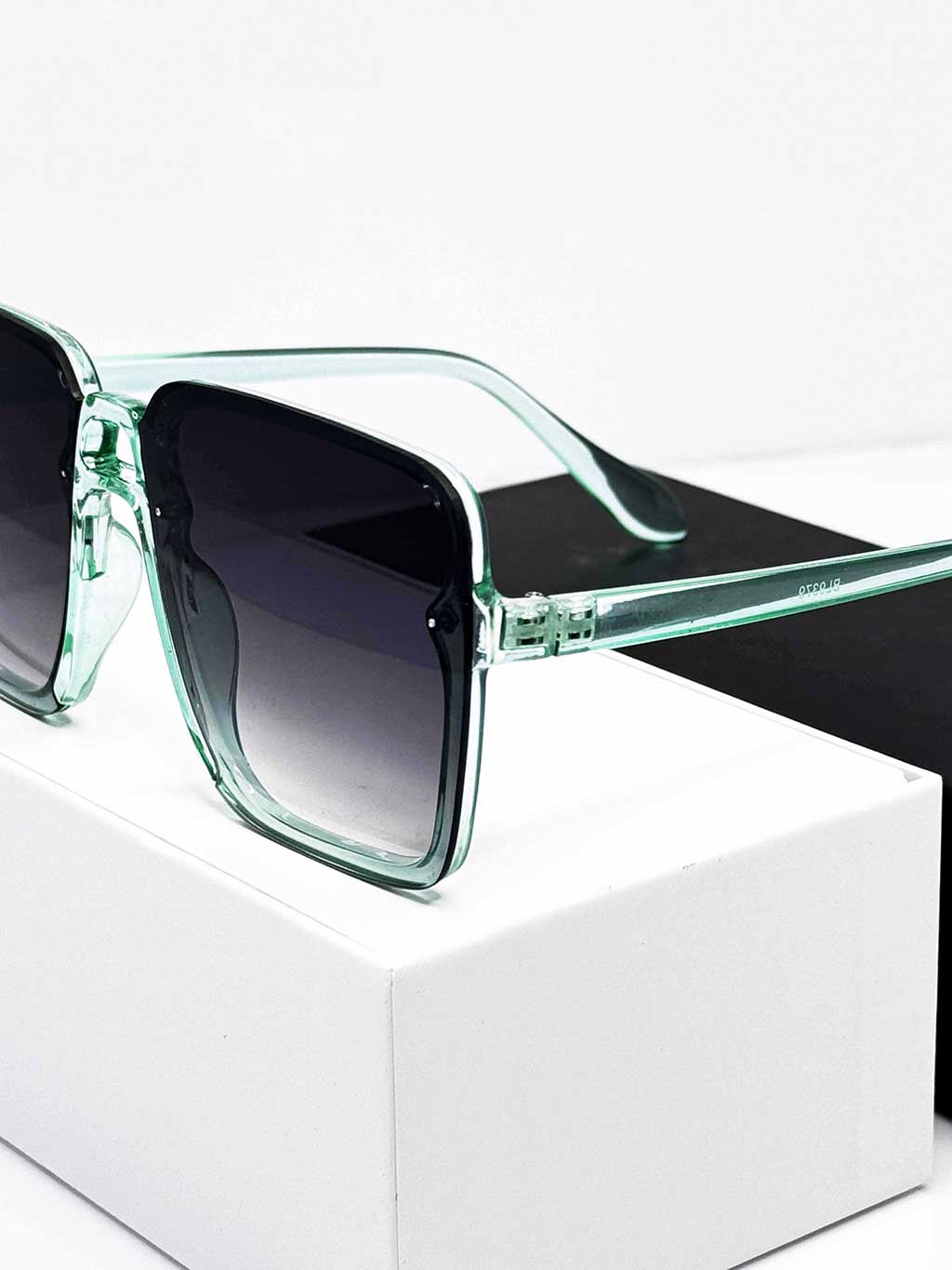 این عینک آفتابی زنانه فریم سبز مربعی با طراحی مدرن و شیشههای گرادیانی دودی،